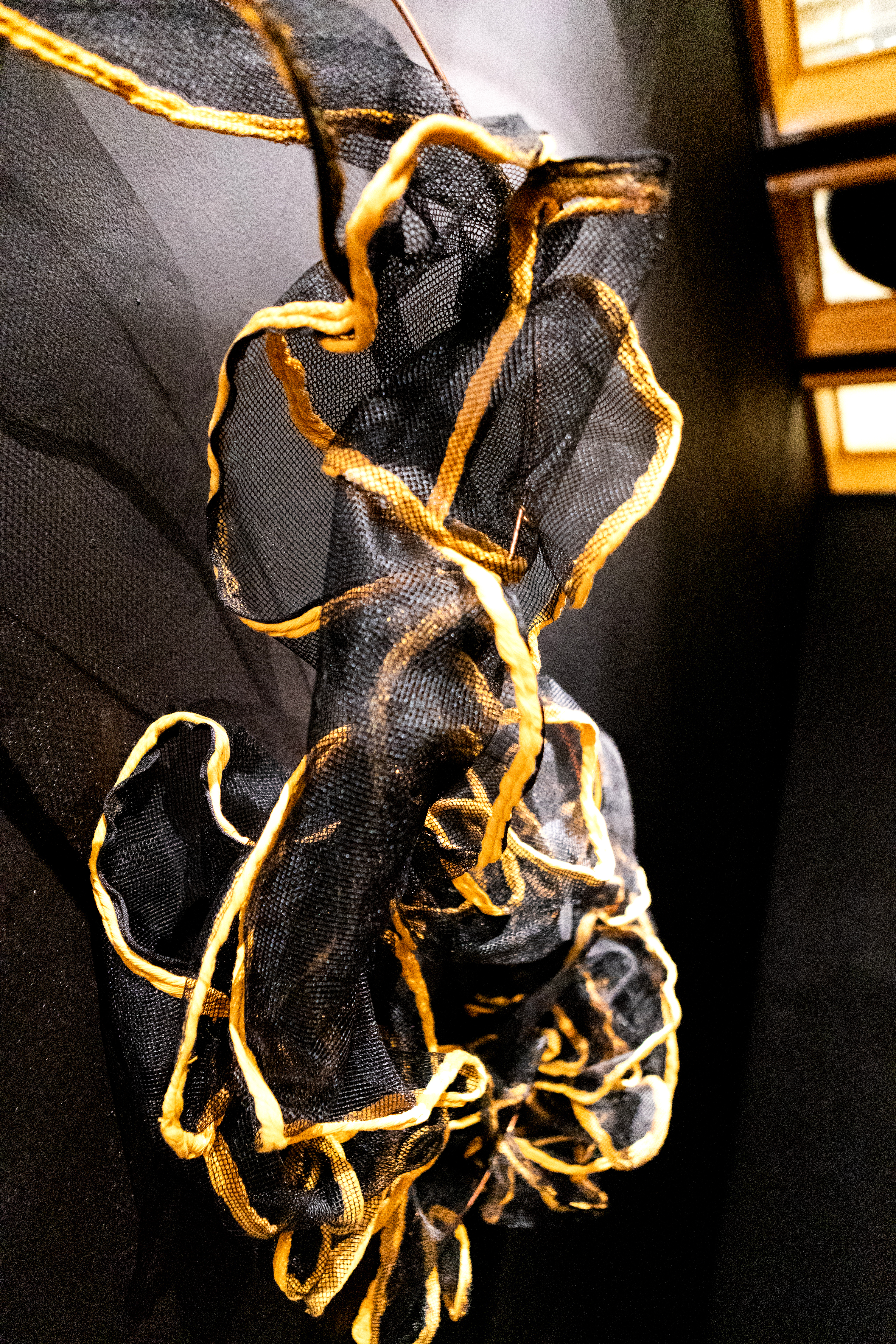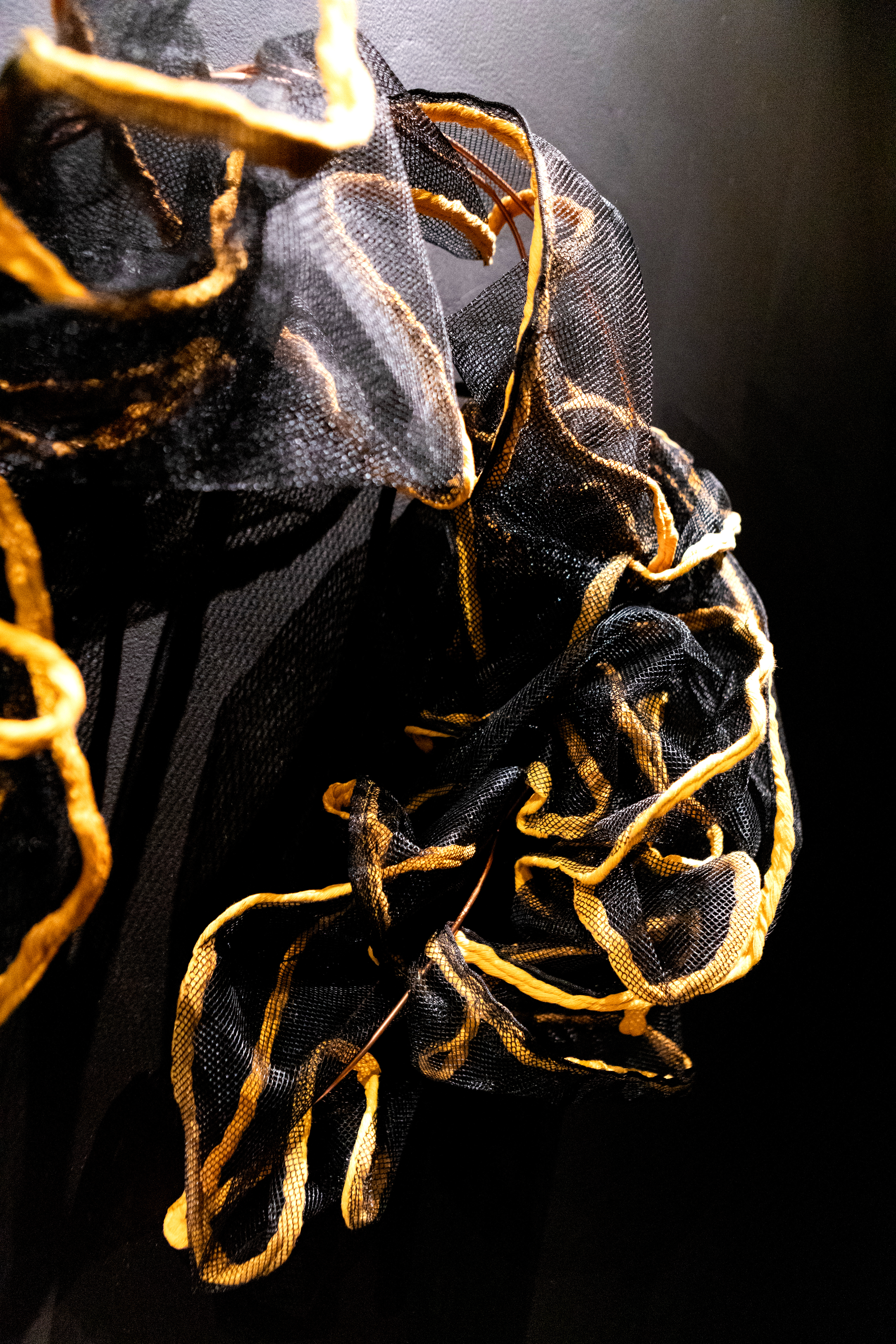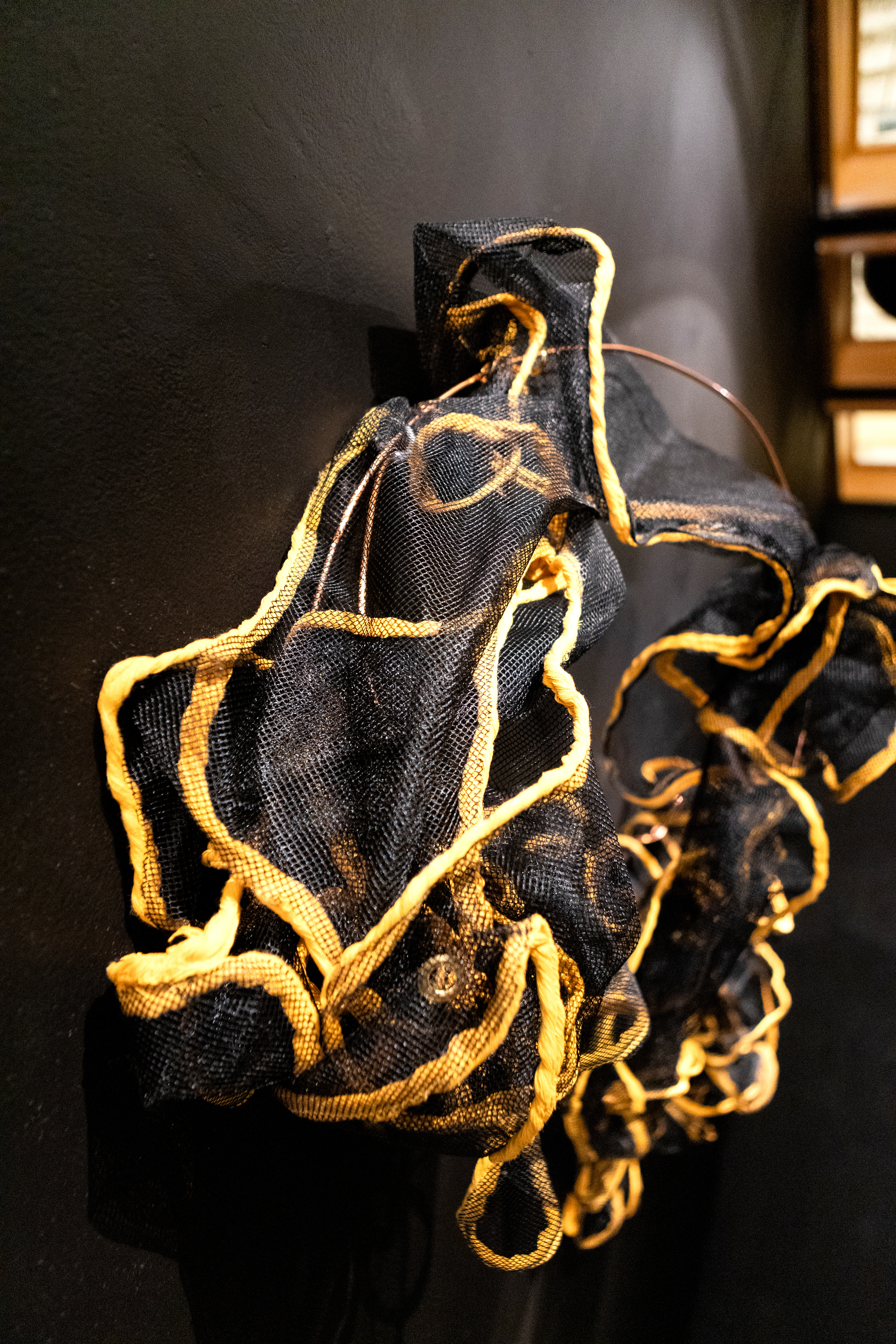 Empty date, 2025, Copper, net, wool, grommet. 64″ x 20″ x 6″