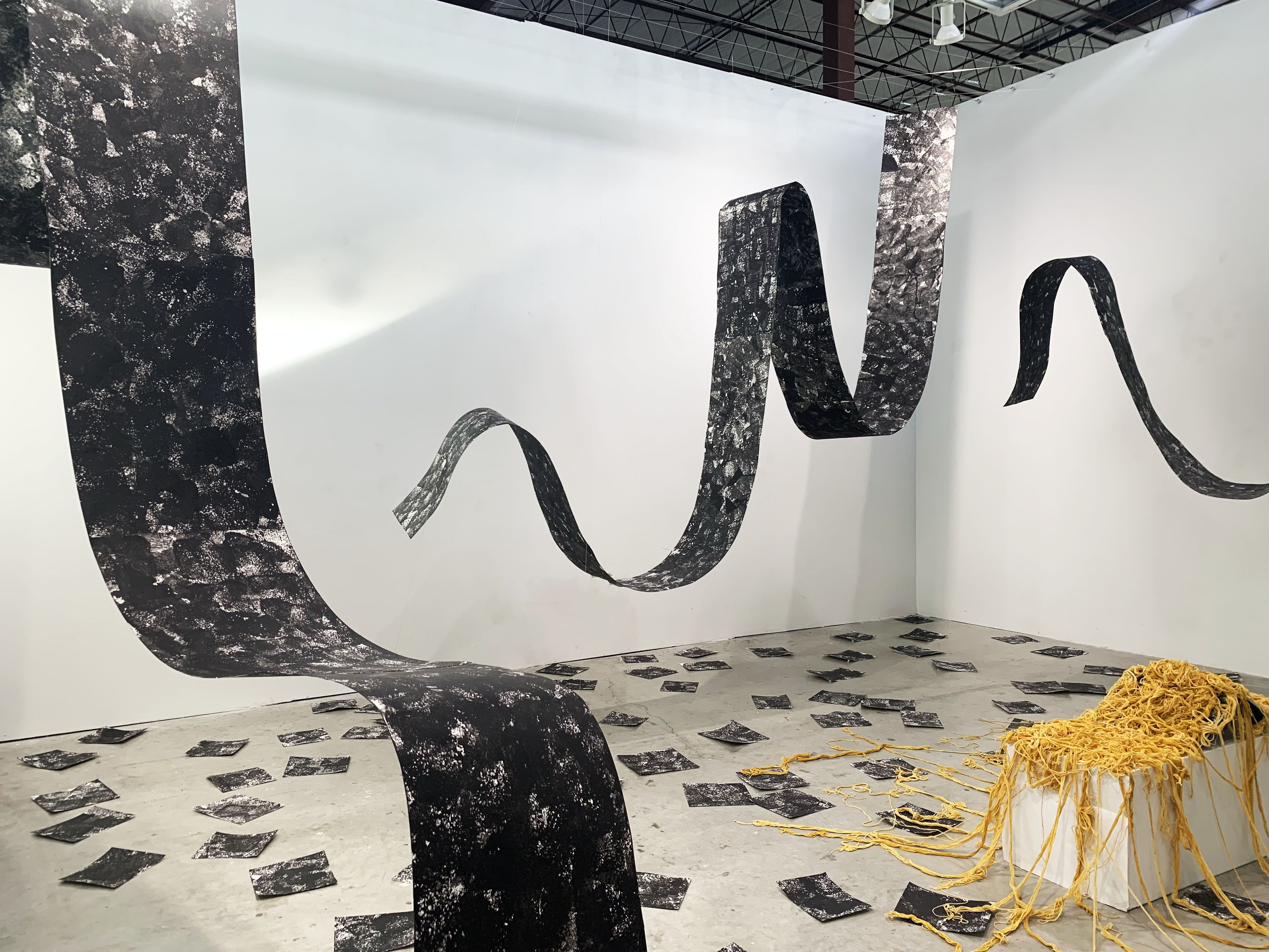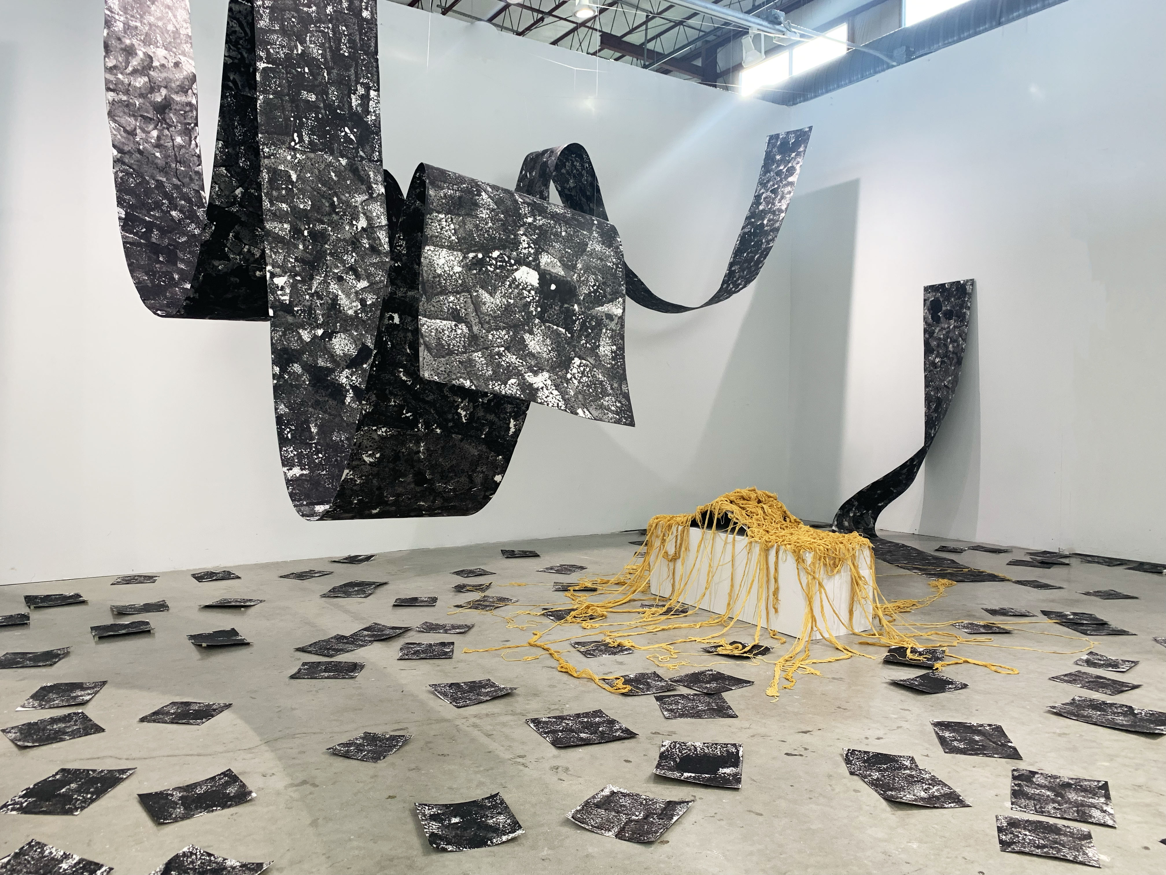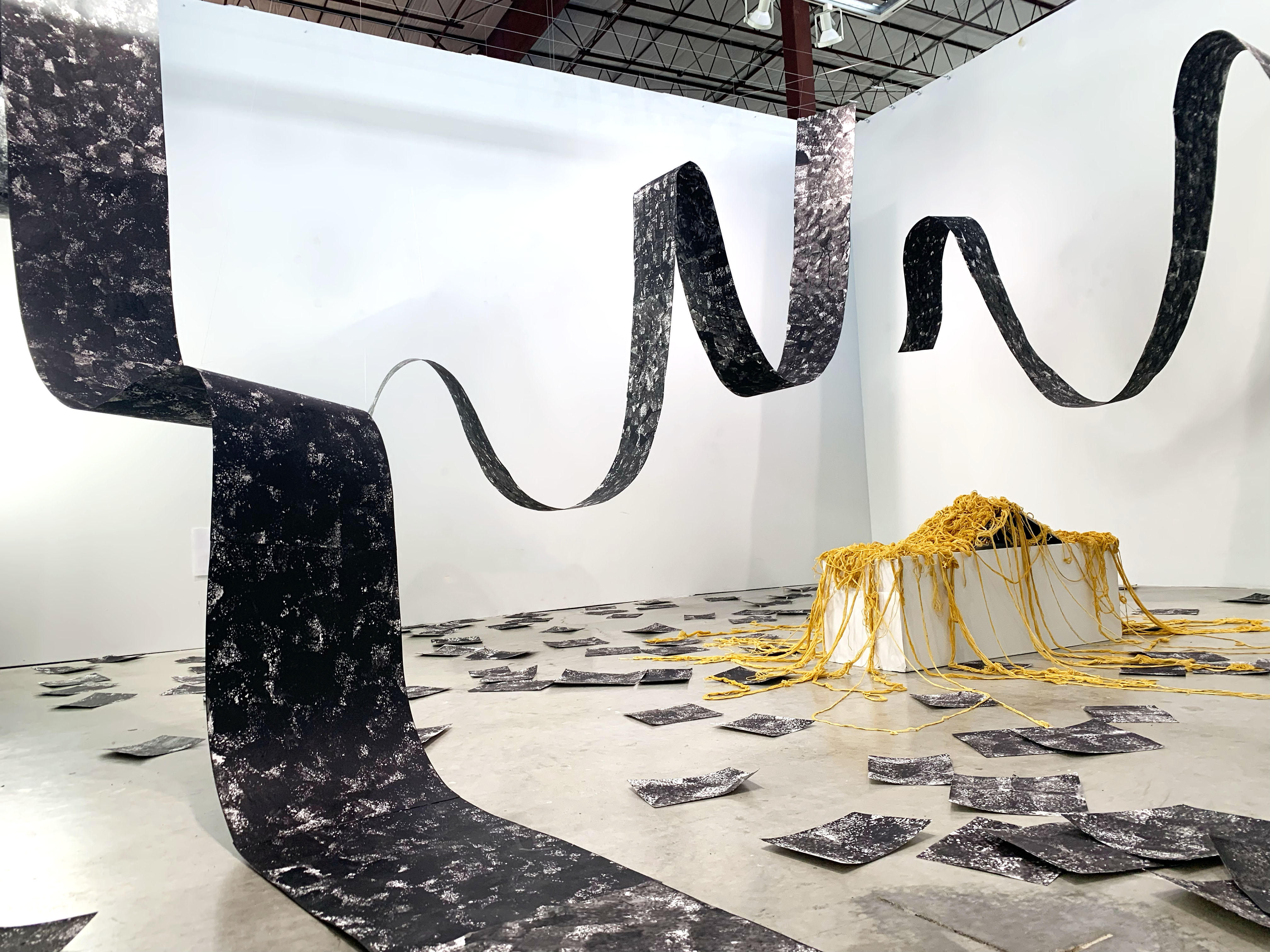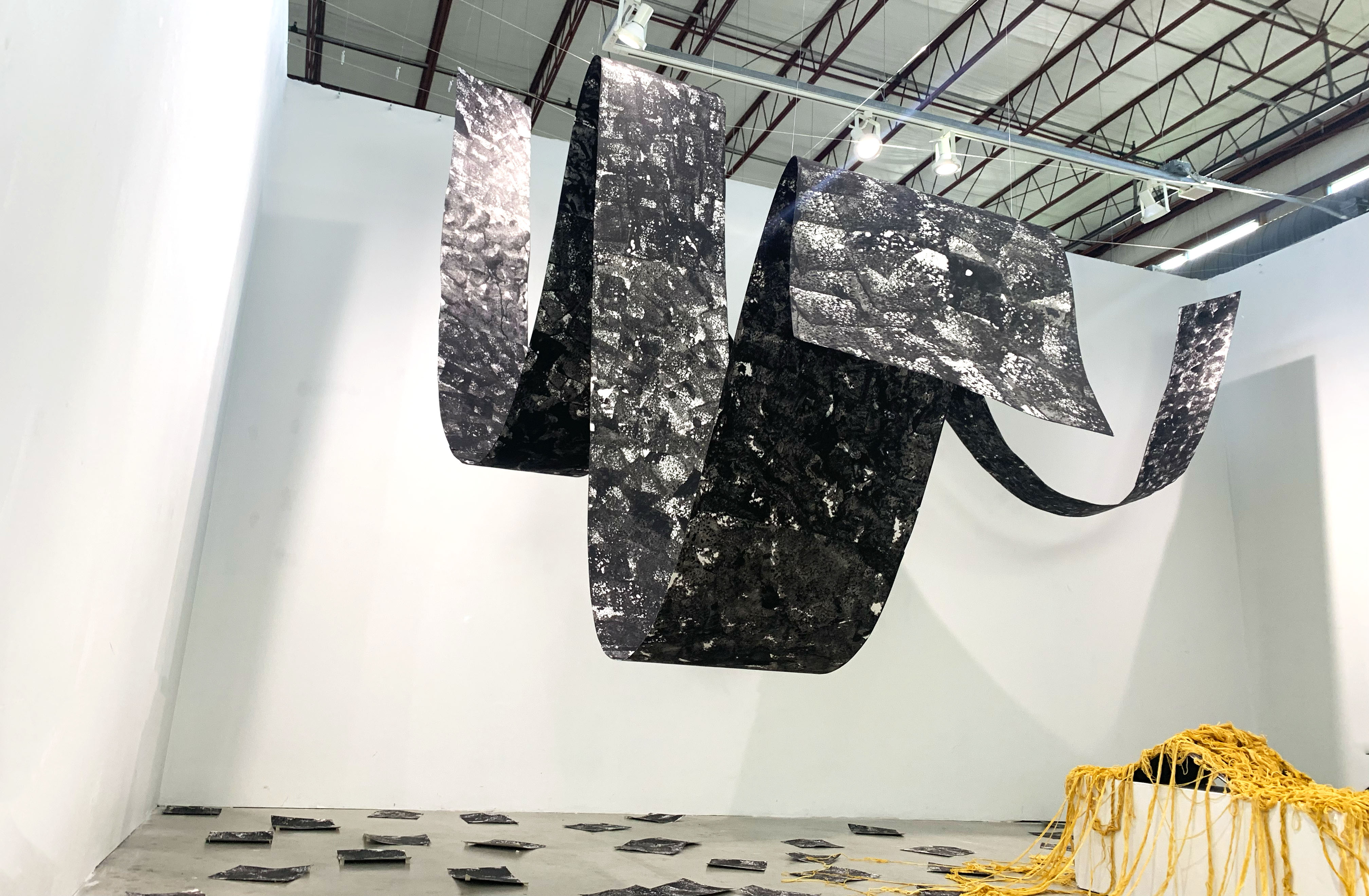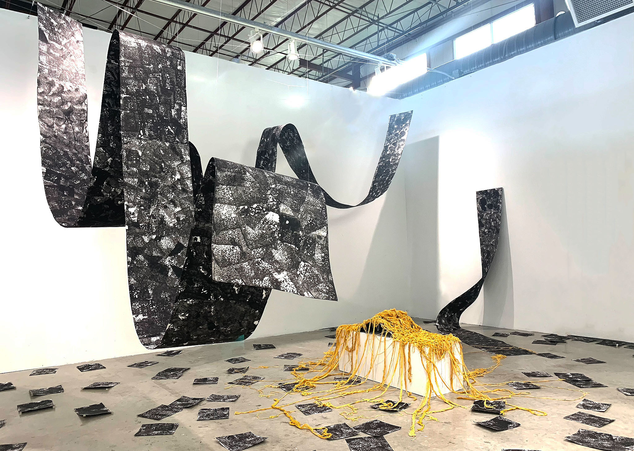 FRONTIER, 2021. Rayon, Canon paper, Aluminum, Ink. Size Varies (288″ x 27.6″ x 96″)