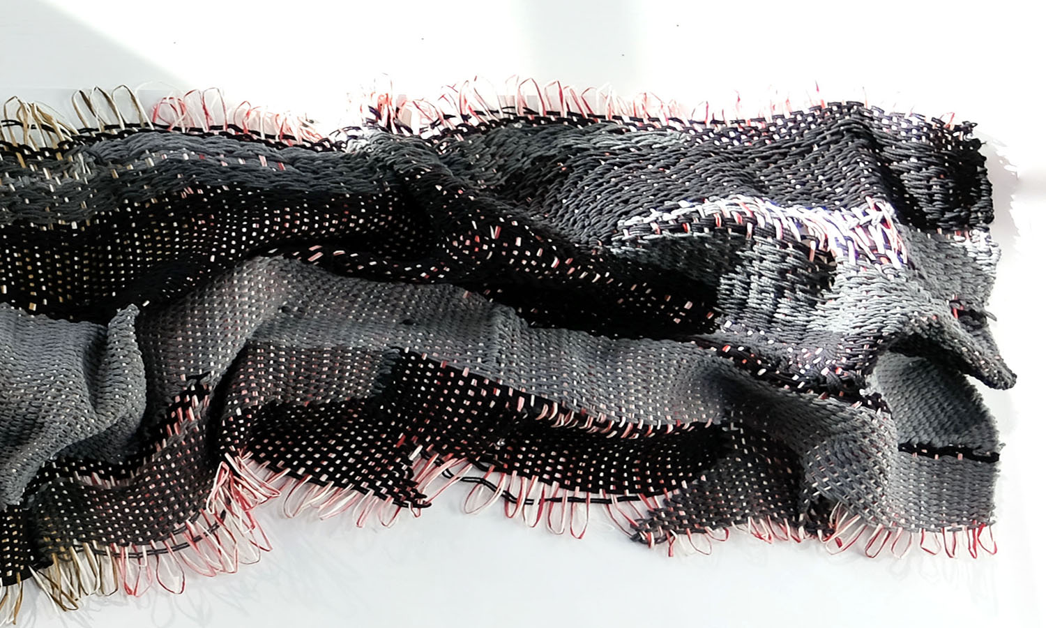 I AM NOT IN CONTROL, 2022. Recycled cotton, Multi-colored raffia. 37.2″ x 87.6″ x 8″