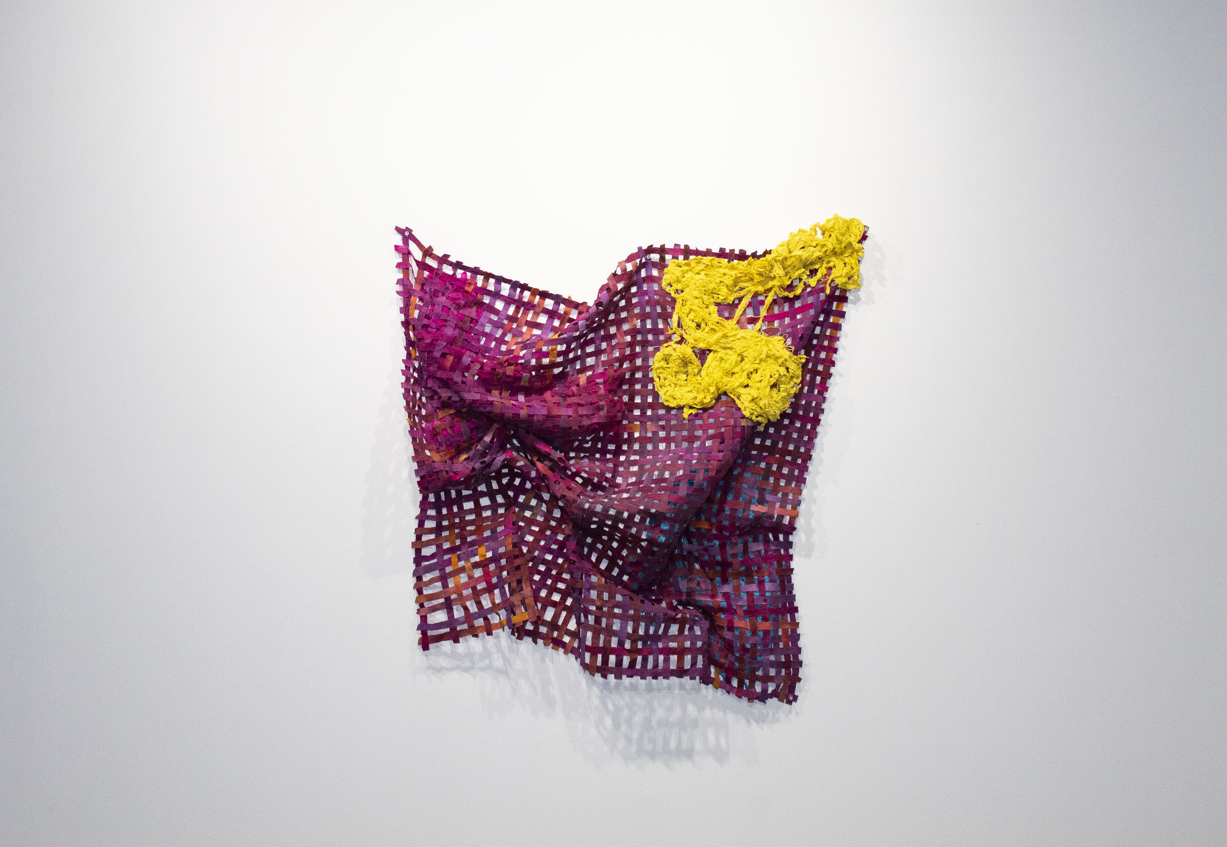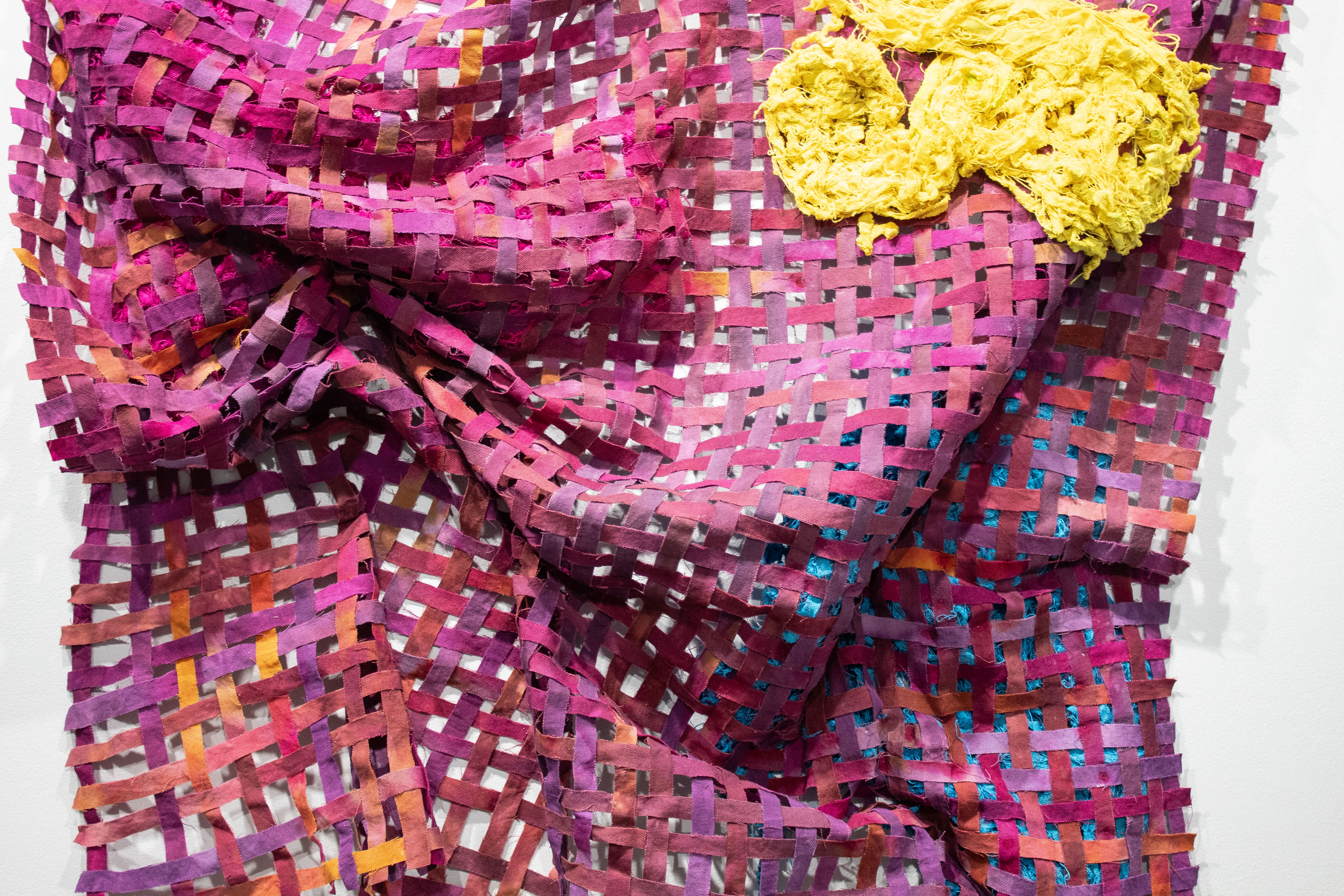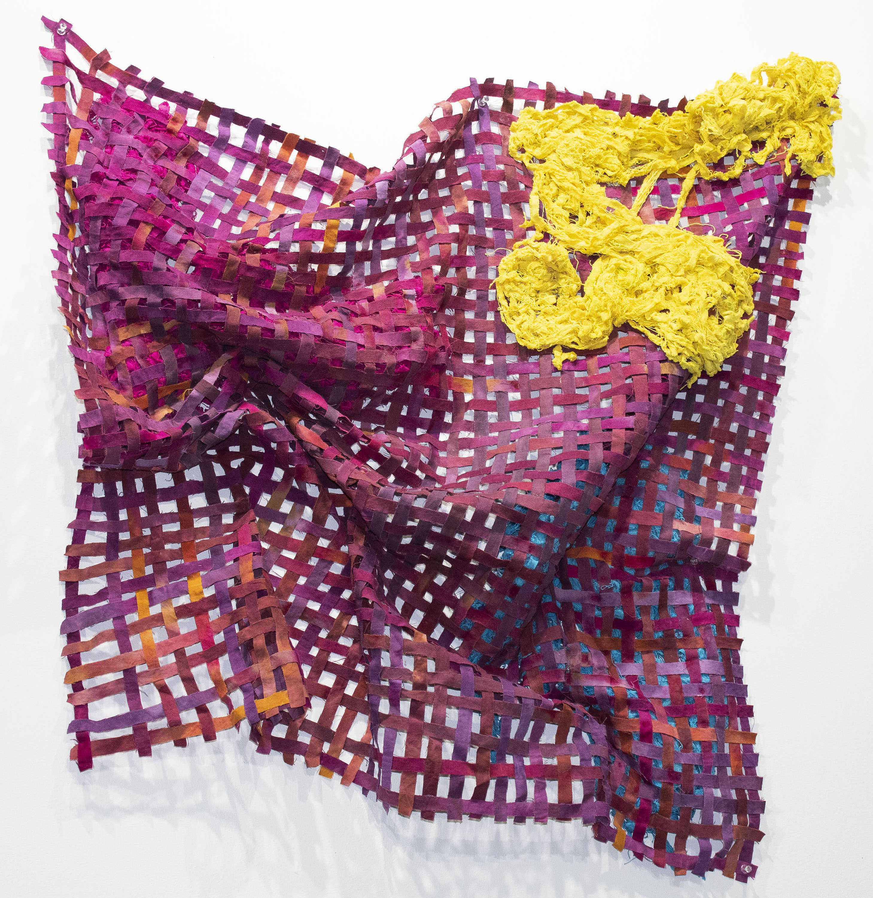 WHILE WE SMILE, 2022. hand dyed canvas, MX dyes, Adhesive, Thread. 33″ X 24.6″ X 9″